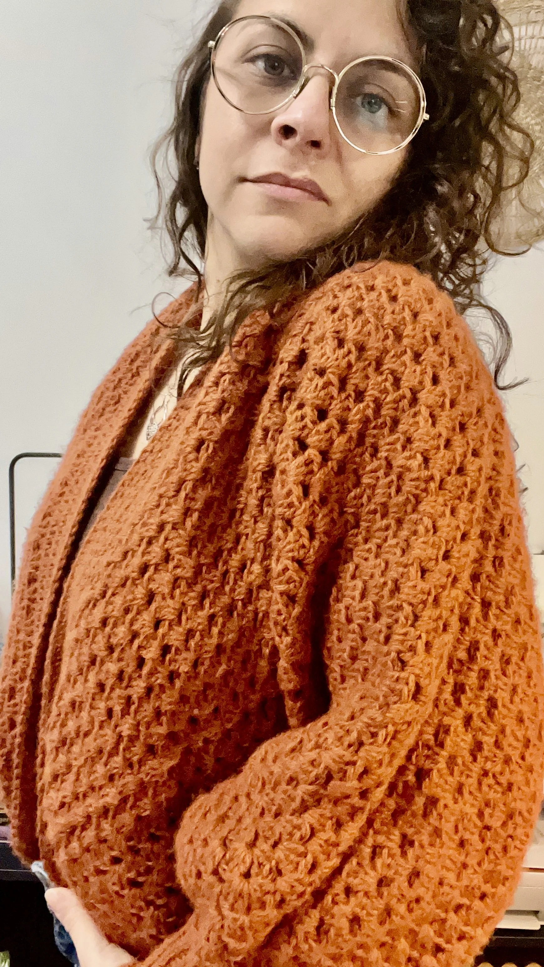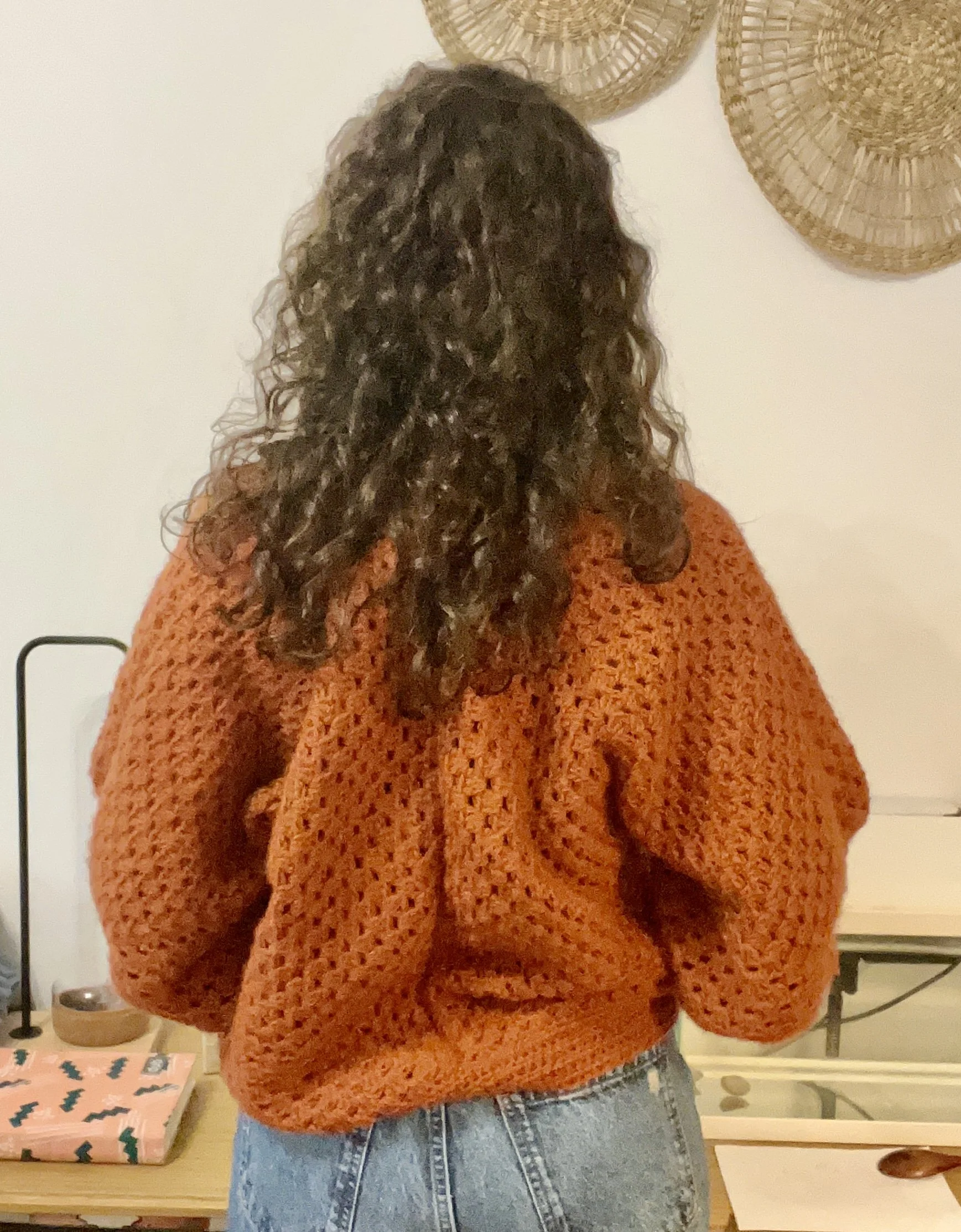Eu adorei esta primeira experiência que tive a fazer roupa em croché, eu passei o processo todo ansiosa por ver o resultado final e garantir que me iria servir confortavelmente. Desfrutei de cada ponto que fiz, explorei várias alternativas para o acabamento (rebordos e punhos), e apesar de ter mudando de ideia ao longo do trabalho no final das contas, correu tudo bem e não tive de desfazer nada, tanto para o casaco branco como para o ferrugem. Mas agora vamos por partes, porque mesmo tendo feito dois casacos muito semelhantes, as experiências foram um tanto diferentes.
