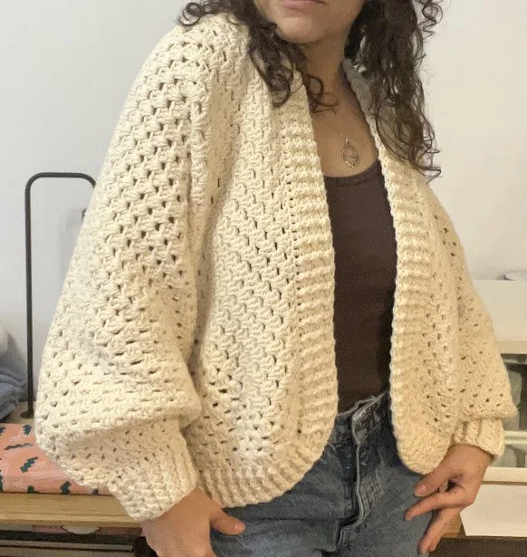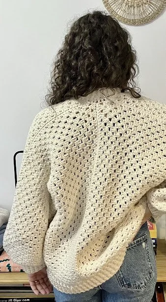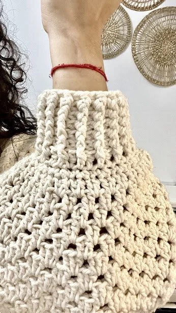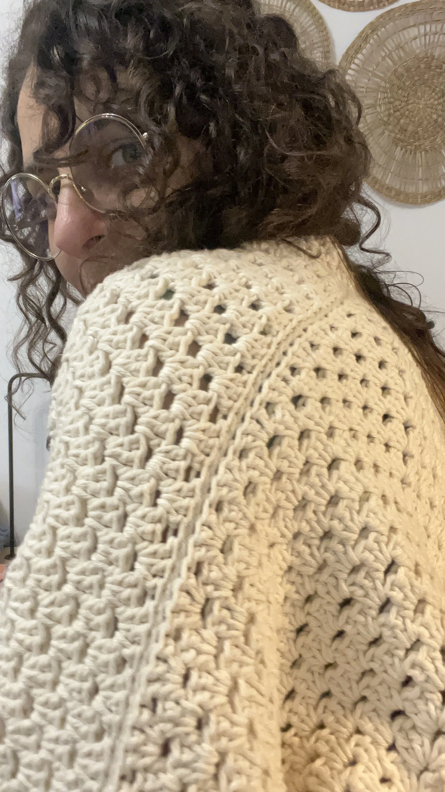 Se estás com ideias de te aventurar como eu a fazer uma peça de roupa em crochê, vai vestindo a peça para ver como ela vai caindo. Usa marcadores de pontos para juntas as várias partes e ir experimentando, tirando medidas e notas.